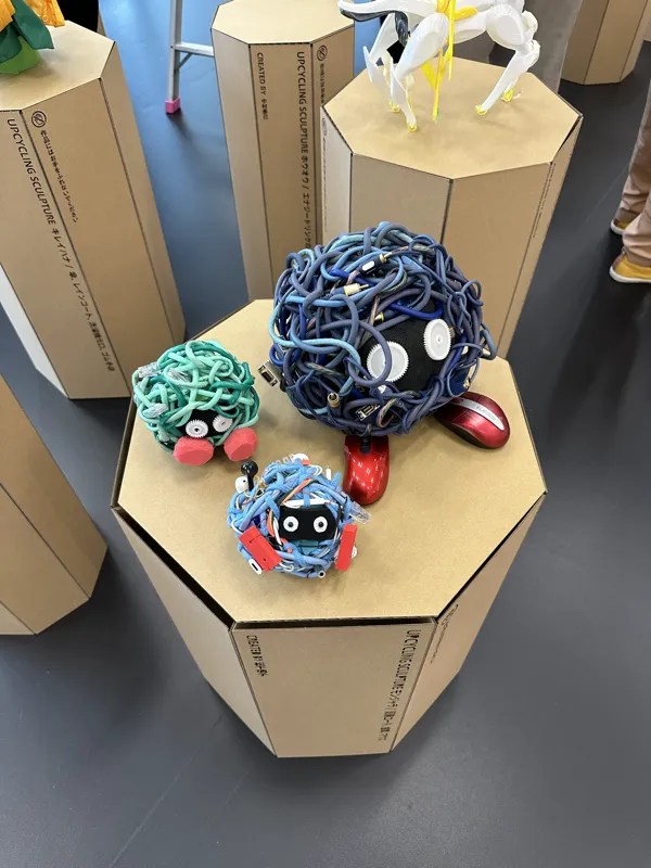 ▲「モンジャラ」もLANケーブルなど使わなくなったケーブルを材料にしています。