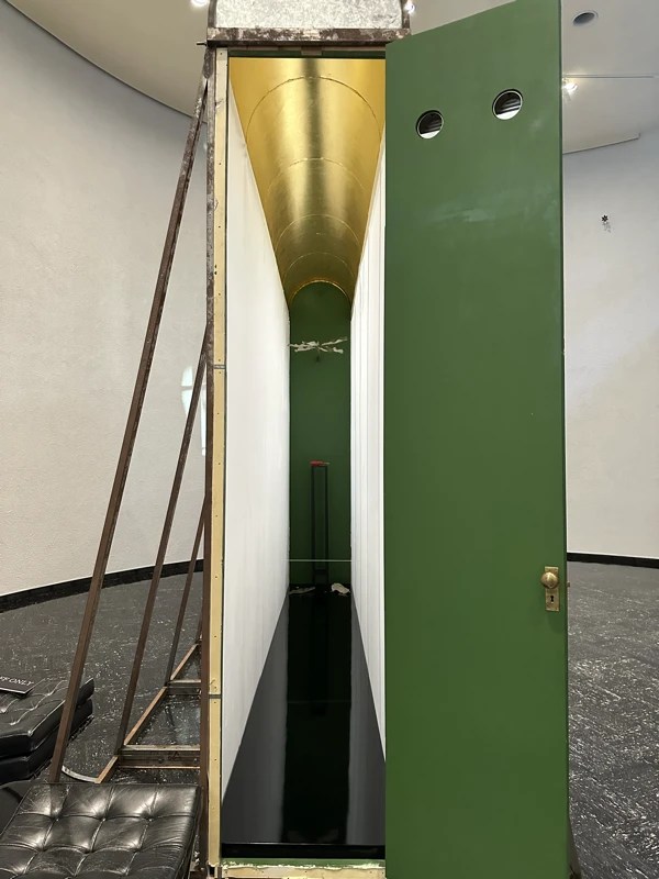 この作品は、地下1階の展示室からは見えない場所なのでここで探しても絶対見つけられません。