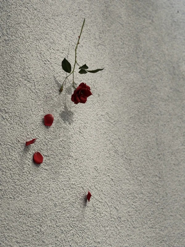 ▲ポツンと置かれていたバラですが、散りゆく花びらが増えています!花びらが追加されたことで動的な表現に変化しました。
