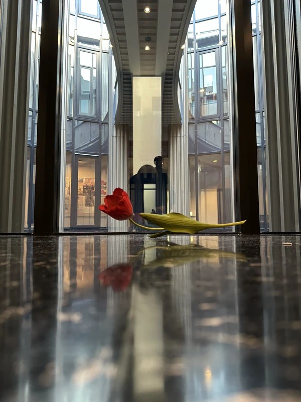 ▲展示室のほぼ中央にさりげなく、でも目を惹くように置かれた「チューリップ」。最新作です。