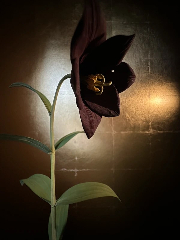 ▲そしてこちらは「クロユリ」。花粉の一つ一つまで判別できそうな超絶技法な木彫作品です。