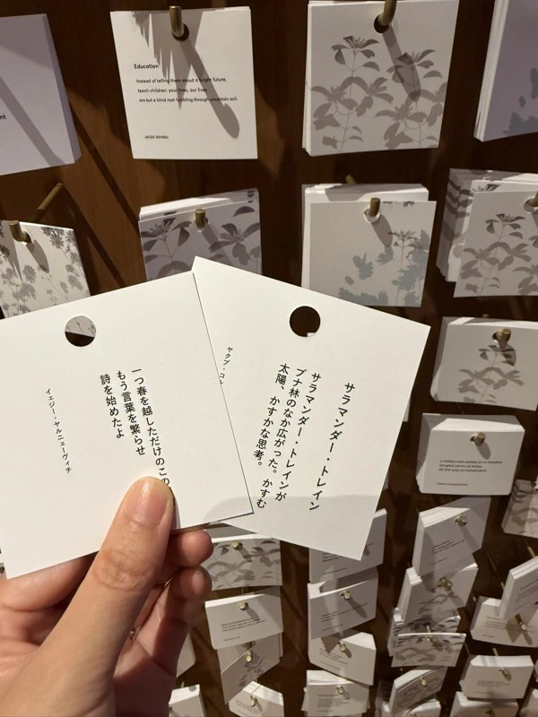 ポーランドの現代詩人たちが俳句の表現形式に倣って詩が館内の各所に掲示されています。